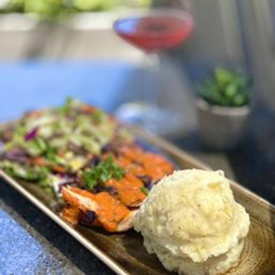 A lunchtime portion of spicy chicken, prepared with a blend of chili peppers and spices. The dish is usually served with choice of fries and a small salad, or with other sides, or incorporated into a sandwich or wrap.