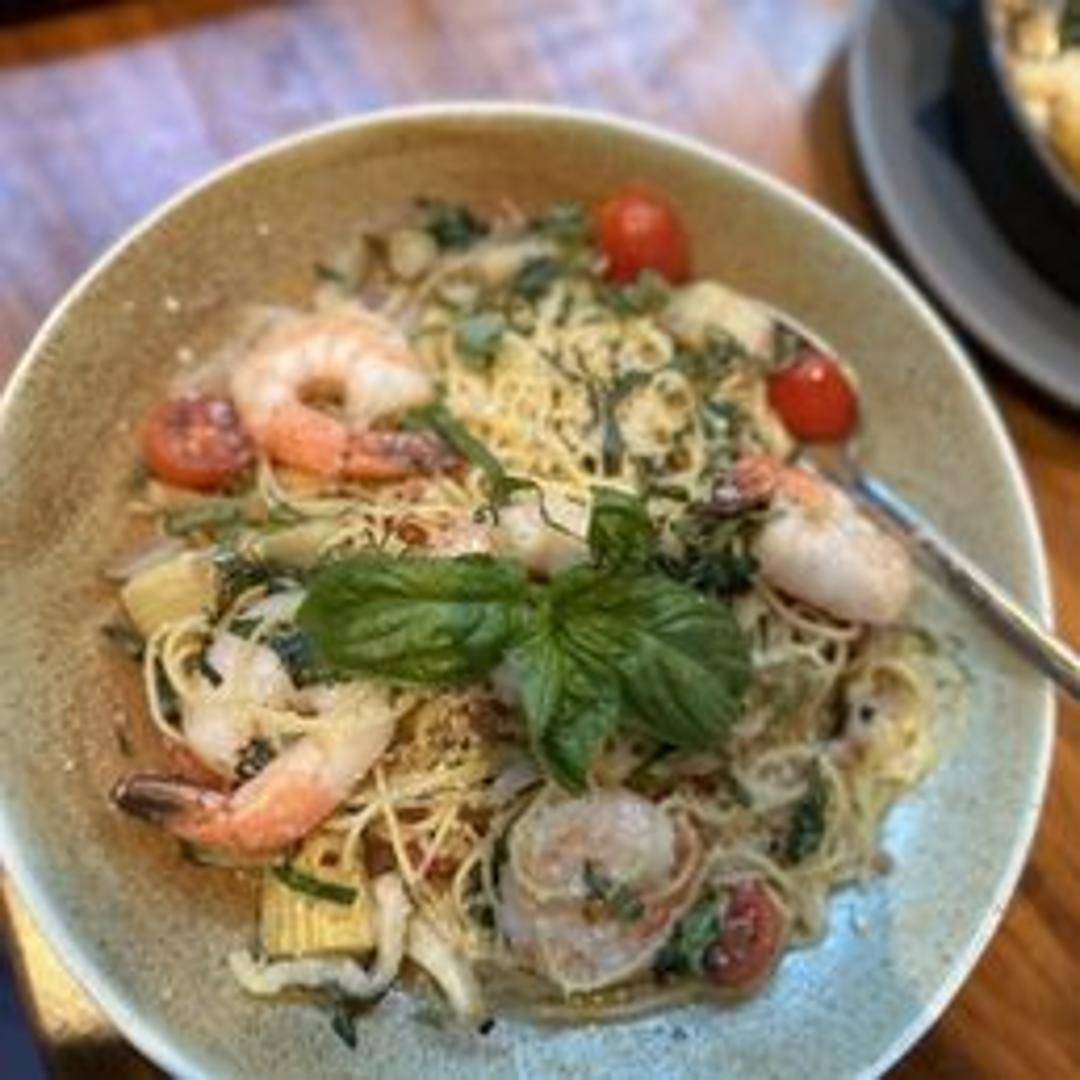 Delicate angel hair pasta tossed with a flavorful sauce, such as pesto, marinara, or a creamy Alfredo. Can be served with added protein options such as grilled chicken, shrimp, or vegetables. Finished with grated Parmesan cheese and fresh herbs.