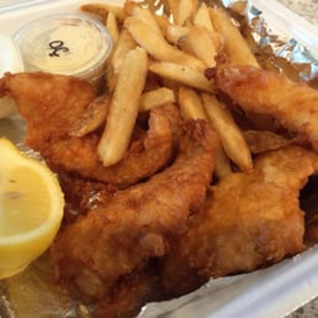 Crispy, golden-fried fish fillets served with a mountain of seasoned fries and a side of creamy coleslaw. Malt vinegar available upon request.