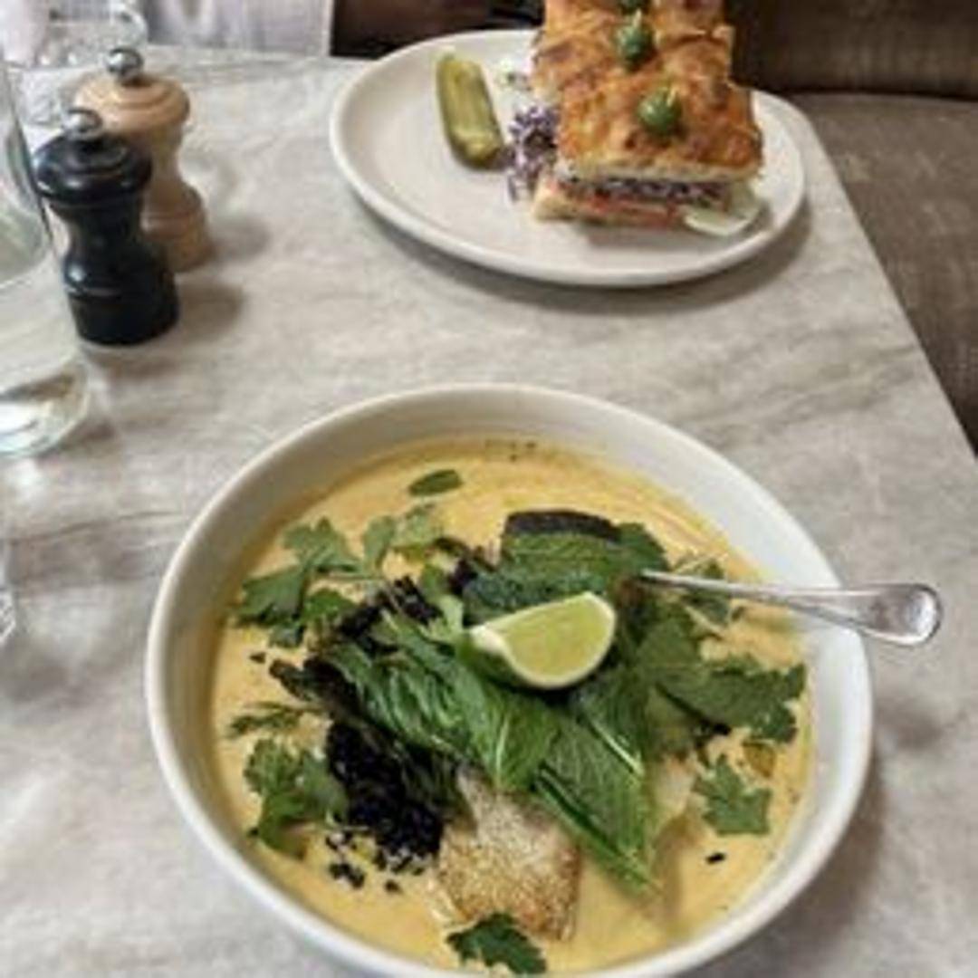 A fragrant and creamy coconut-based curry, featuring tender vegetables and aromatic spices, served with a side of steamed rice.