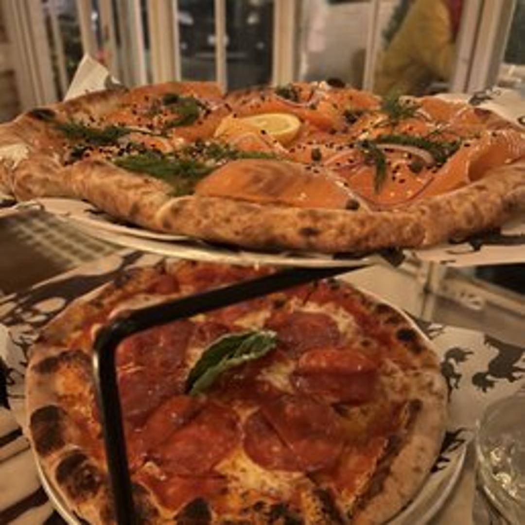 A spicy pizza topped with tomato sauce, mozzarella cheese, spicy salami, and chili flakes.