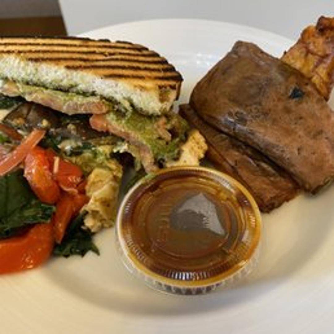 Thick slices of grilled eggplant layered with marinara sauce, melted mozzarella and parmesan cheese, and fresh basil. Served on a toasted ciabatta roll for a satisfying and flavorful vegetarian sandwich.