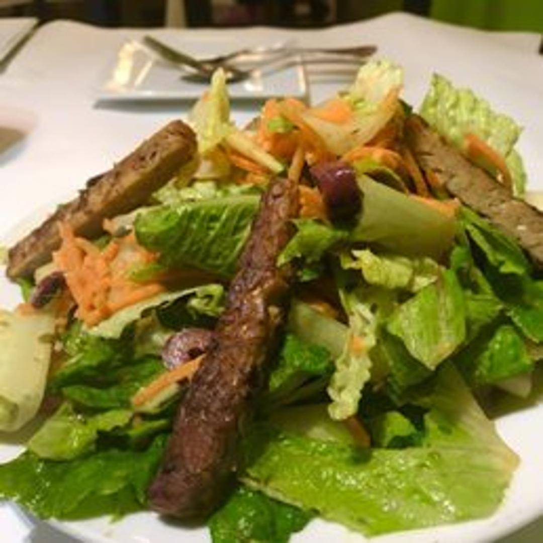 A plant-based twist on the classic Caesar salad. Crisp romaine lettuce tossed in a creamy, vegan Caesar dressing. Topped with seasoned and baked tempeh, providing a protein-rich alternative to traditional croutons. Garnished with vegan parmesan and cracked black pepper.