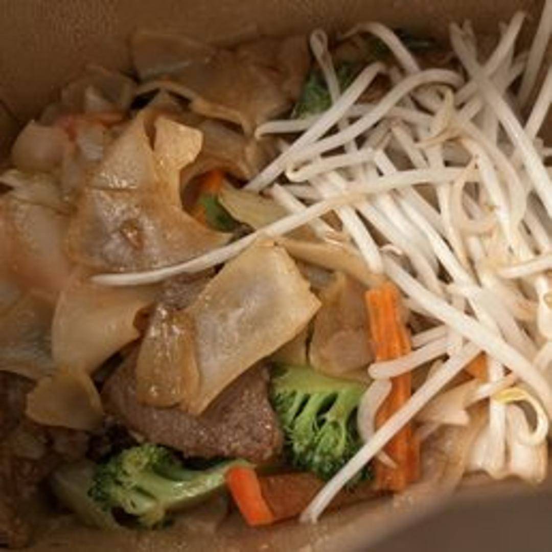 Wide rice noodles stir-fried with mixed vegetables and your choice of protein (tofu, vegetables) in a flavorful brown sauce. A classic and satisfying noodle dish.