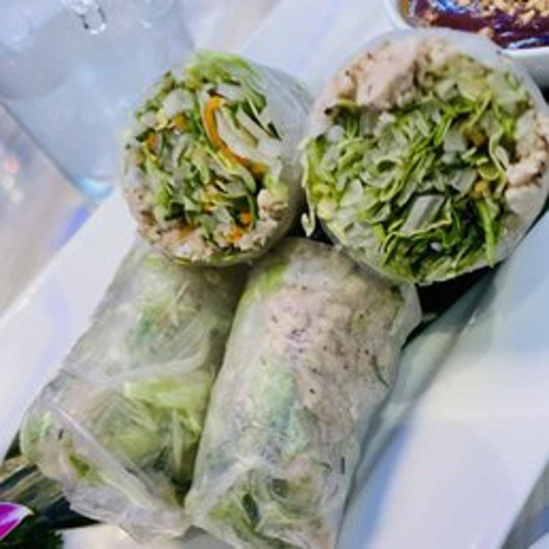 Fresh rice paper rolls filled with rice noodles, shrimp, lettuce, carrots, cilantro, and basil. Served with a sweet and savory peanut dipping sauce.