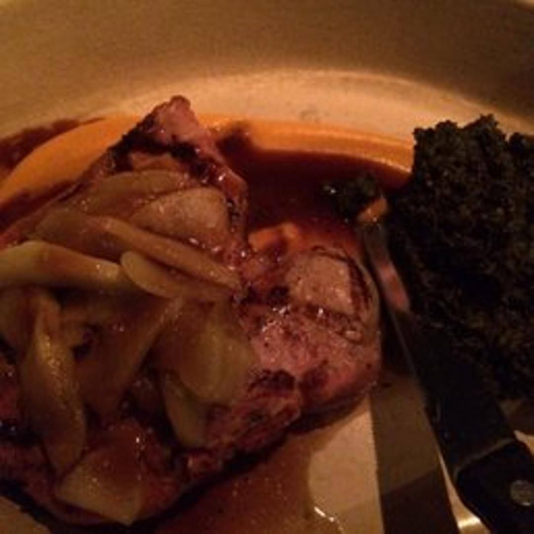 A thick-cut, succulent pork chop, pan-seared or grilled to perfection, boasting a tender interior and a beautifully caramelized crust. This hearty entree is often paired with seasonal accompaniments, a savory reduction, or a fruit-based compote that highlights the natural sweetness of the pork.