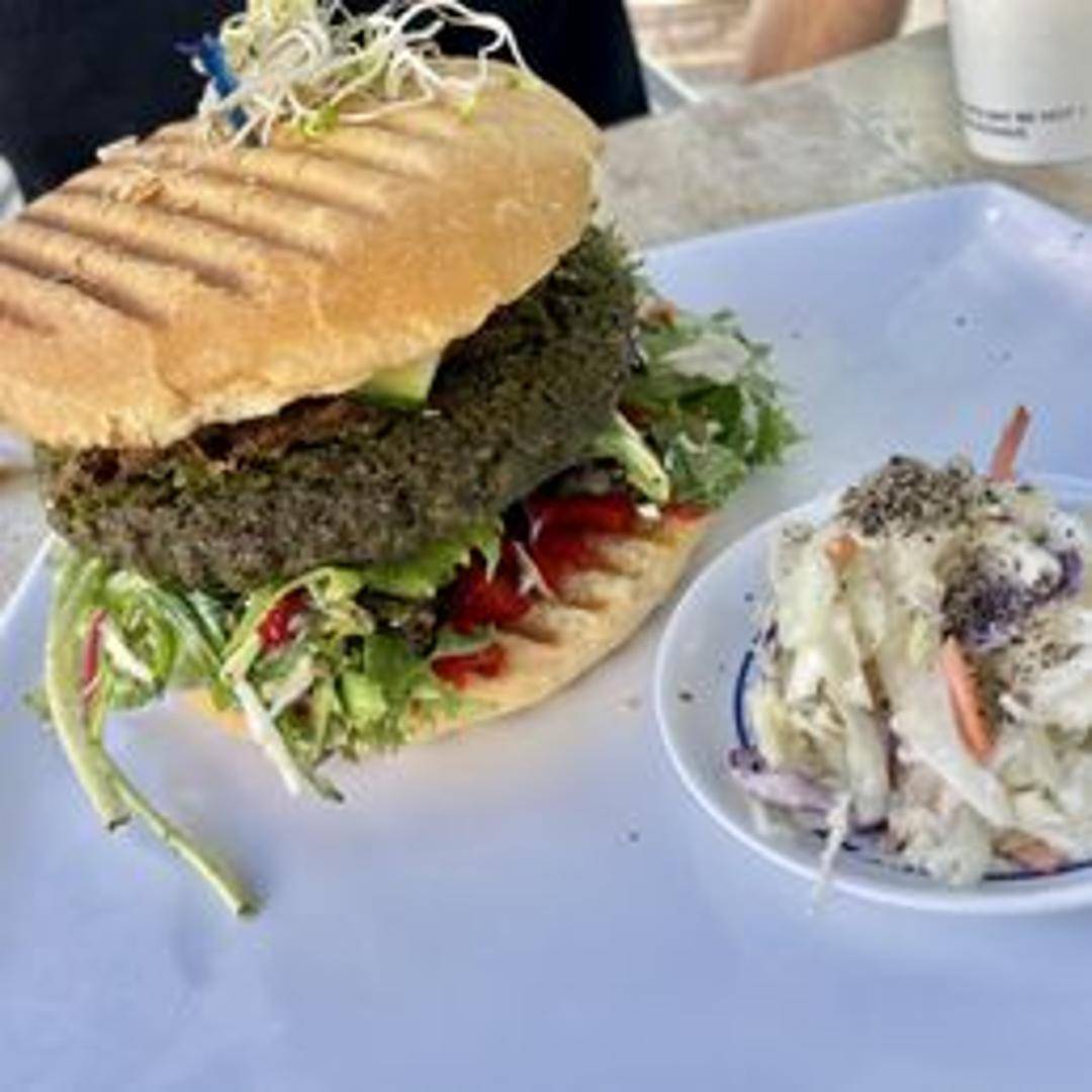 A Green Table Cafe signature creation. This burger features a flavorful plant-based patty, topped with fresh lettuce, ripe tomato, crisp onion, and our special house-made sauce, all served on a toasted bun. A satisfying and delicious plant-based burger experience.