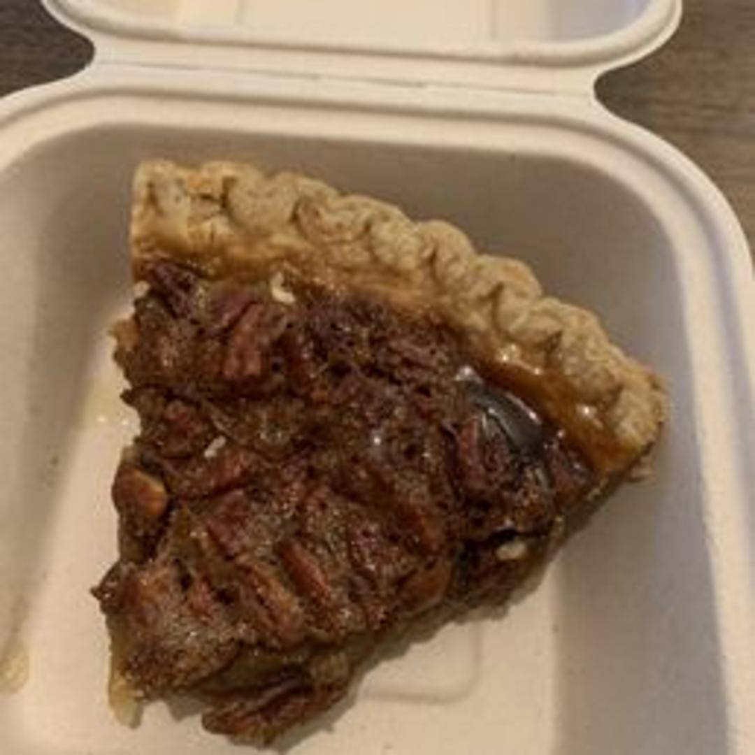 A slice of our classic pecan pie, rich with toasted pecans in a sweet, buttery filling, baked in a flaky crust.
