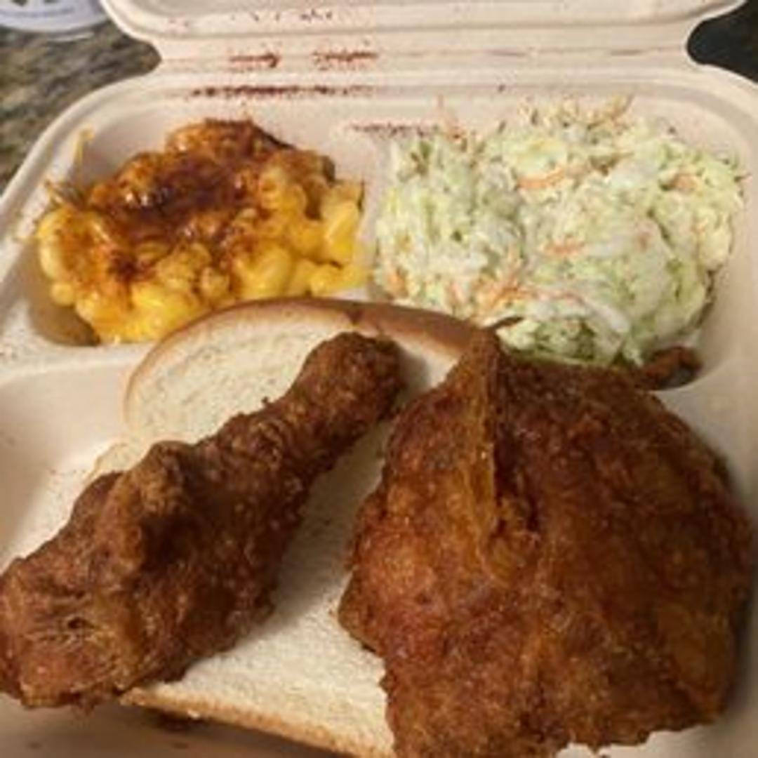 Two pieces of our juicy, crispy fried chicken, consisting of leg and thigh, served with your choice of two classic sides.