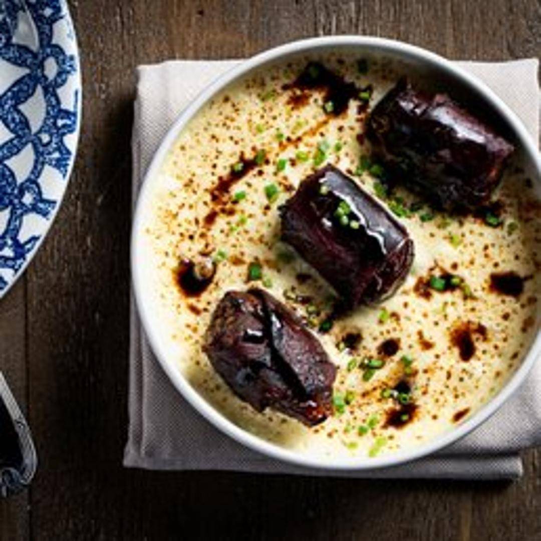 Sweet Medjool dates, lightly charred to enhance their natural caramel notes, often stuffed with savory blue cheese or wrapped in crispy bacon, then finished with a drizzle of sweet and tangy glaze.