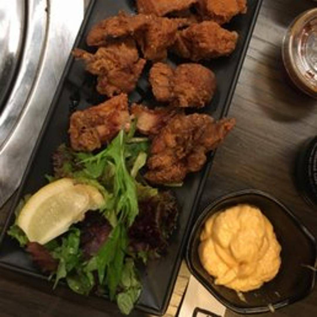 Classic Japanese-style fried chicken, featuring bite-sized pieces of succulent chicken thigh marinated in a savory blend of soy sauce, ginger, and garlic, then perfectly fried to achieve an incredibly crispy exterior and a juicy, tender interior. Served golden brown and full of authentic flavor.