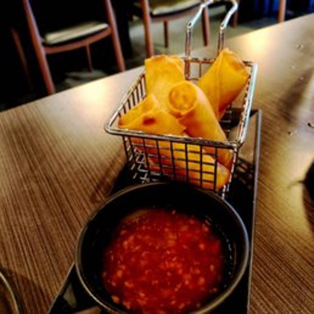 Crispy and golden-fried rolls generously filled with a flavorful medley of fresh, finely diced vegetables, typically served hot and accompanied by a complementary dipping sauce, making them a perfect appetizer or side dish.