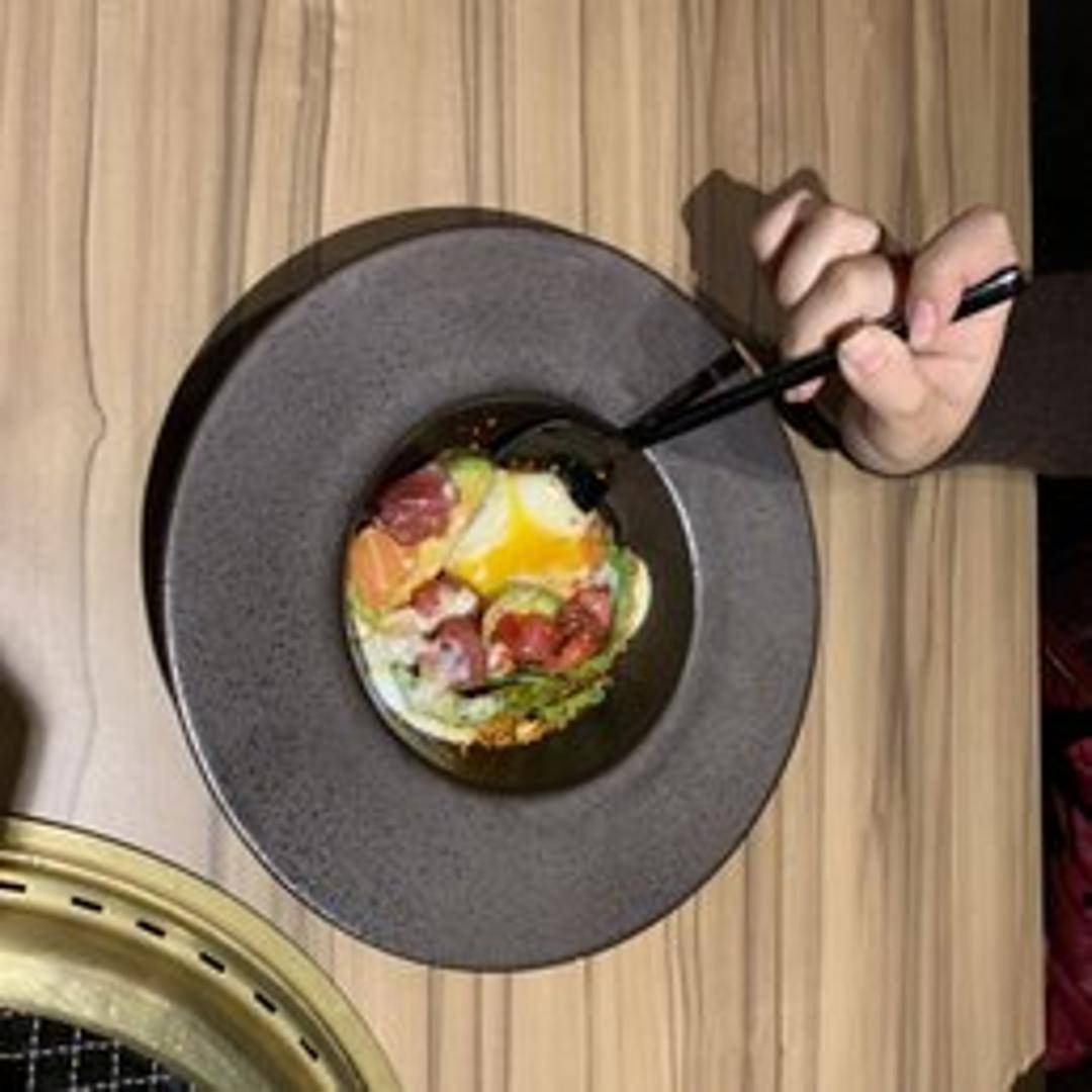 A fresh and vibrant appetizer featuring finely diced premium tuna and salmon, delicately seasoned with a savory and slightly spicy sauce. This exquisite dish offers a delightful balance of rich flavors and smooth textures, often presented with an egg yolk for added creaminess and depth.