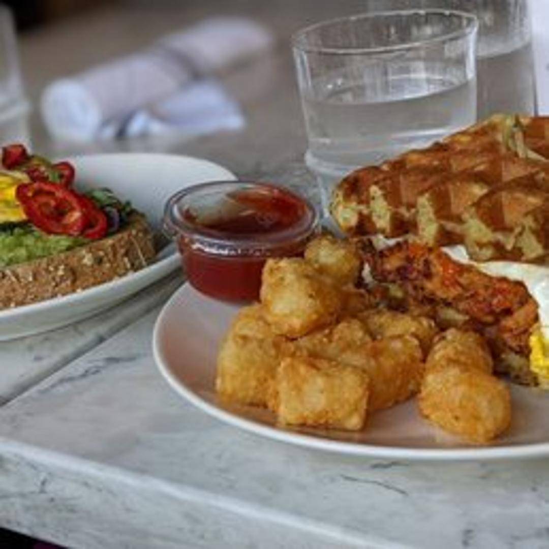 Toasted artisan bread topped with fresh avocado slices, seasoned with salt, pepper, and red pepper flakes. Finished with a perfectly cooked Vital Farms organic egg, adding richness and a creamy texture.