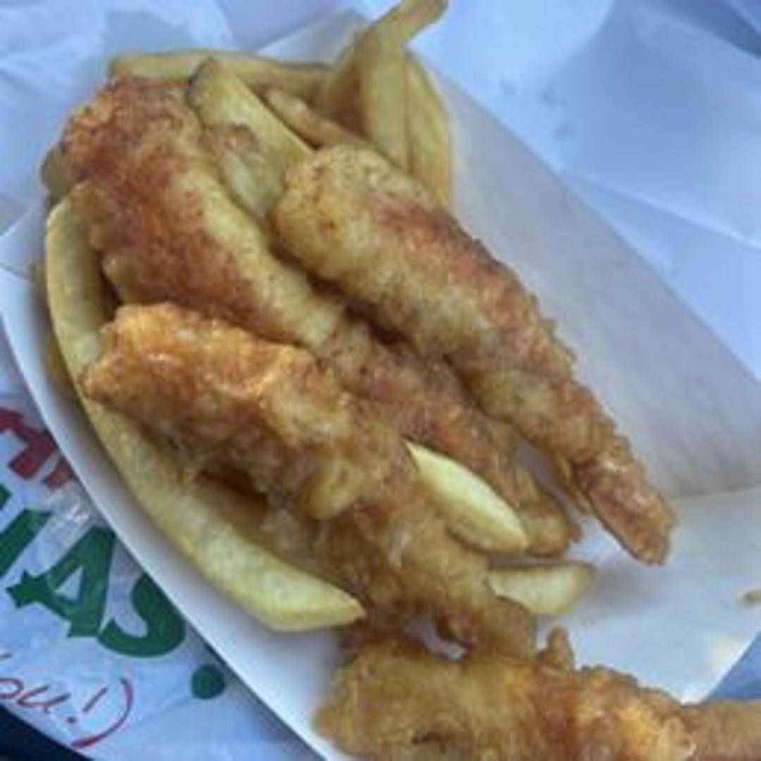 Succulent shrimp, lightly battered and fried until golden and crispy. Served with a generous portion of our signature golden-brown chips.