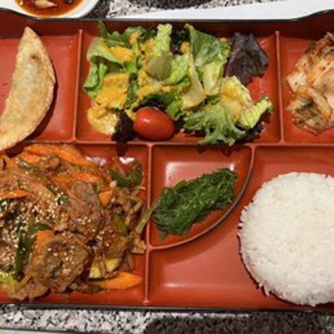 Experience the vibrant flavors of Ha Ahn Korean Restaurant's Pork Bulgogi, a classic Korean dish featuring thinly sliced, tender pork marinated in a savory and subtly spicy gochujang-based sauce. The pork is expertly grilled or stir-fried to perfection, developing a delightful char and locking in its rich, complex flavors of garlic, ginger, and sesame. Served sizzling hot, it's a wonderfully balanced dish that captures the essence of Korean home cooking, perfect when paired with a bowl of steamed rice.
