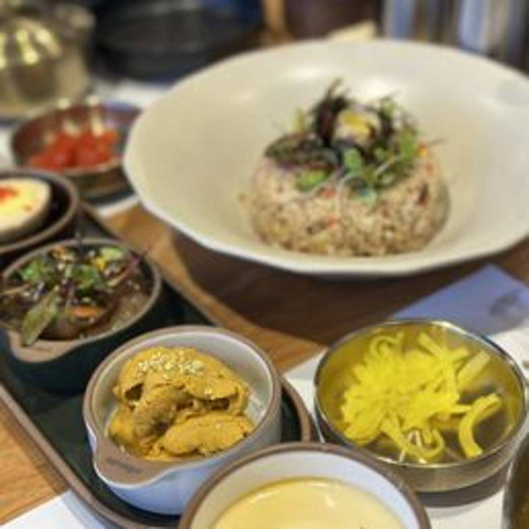A luxurious dish featuring creamy, rich uni (sea urchin) served atop a bed of fluffy rice. The briny sweetness of the uni complements the rice perfectly, creating a delicate and unforgettable flavor experience.