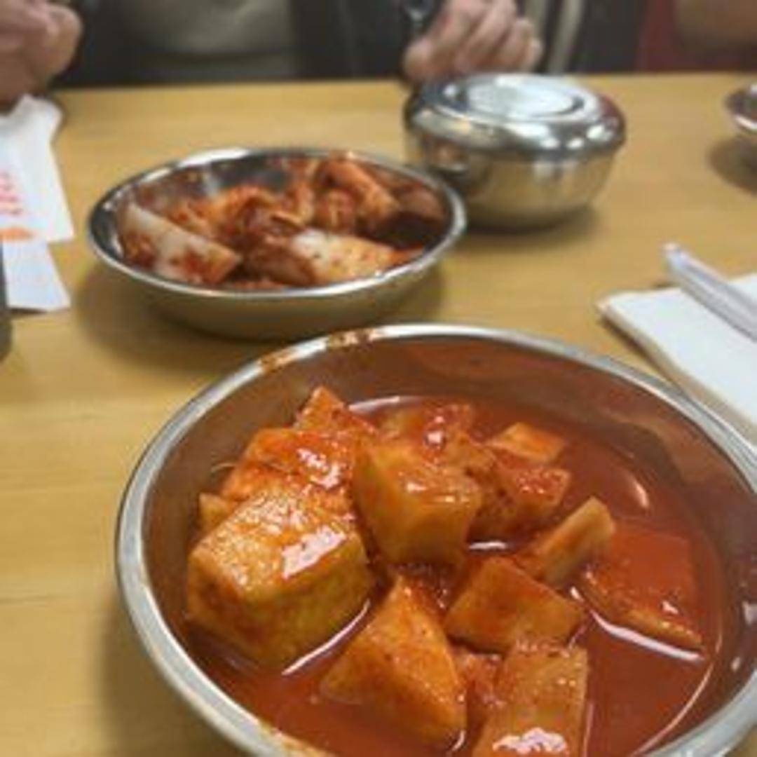 Korean kimchi made with cubed or sliced radish, seasoned with chili powder, garlic, ginger, and other traditional Korean flavors. Crisp, refreshing, and slightly spicy.