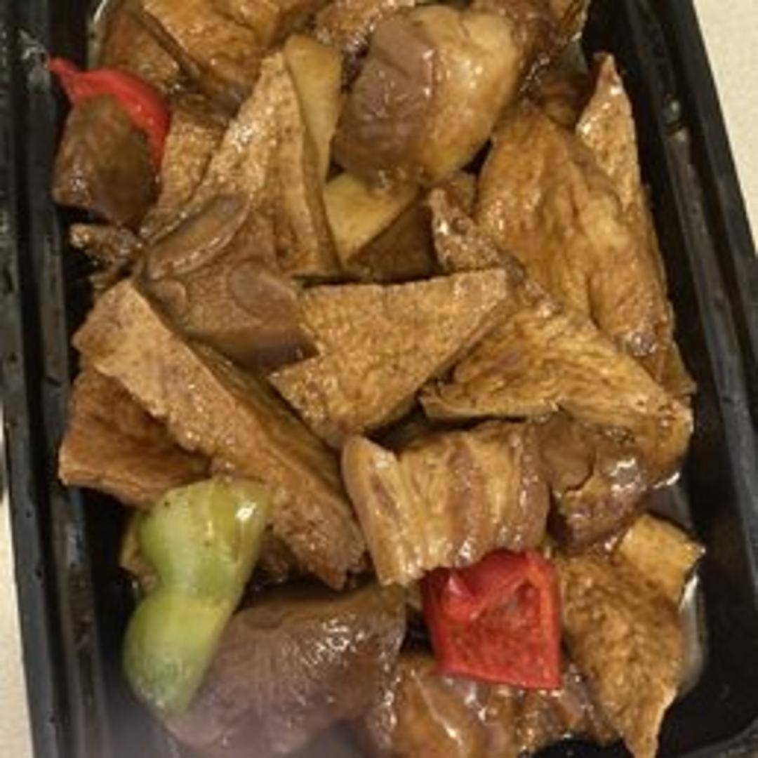 Rich and decadent slices of pork belly prepared with a fiery kick. The tender, fatty layers of pork are cooked to perfection, infused with aromatic spices and a bold chili flavor, creating a satisfyingly spicy and incredibly flavorful dish.