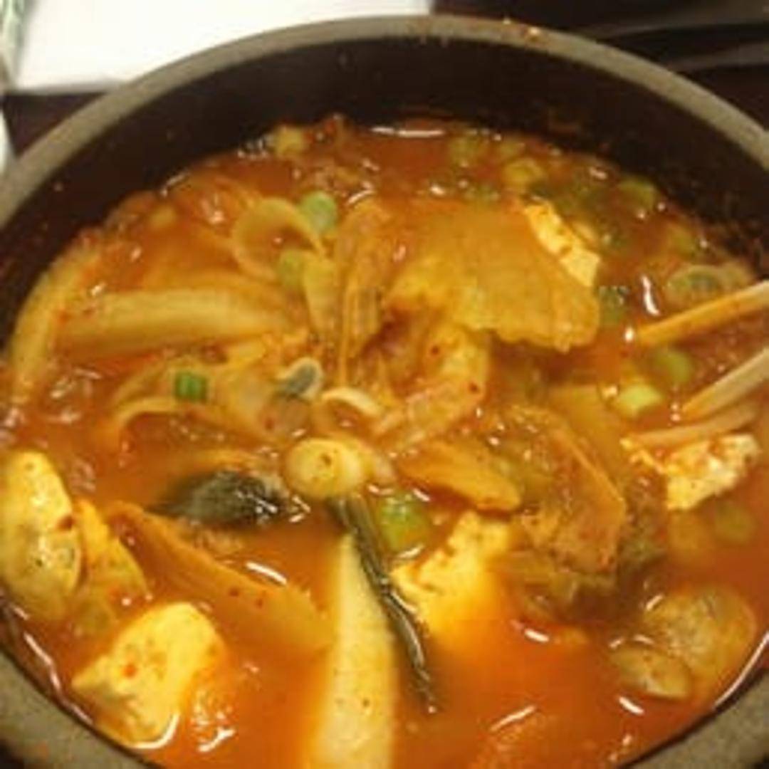 A spicy and flavorful Korean stew featuring fermented kimchi, tofu, vegetables, and often pork or seafood. A hearty and warming soup, perfect for a flavorful meal.