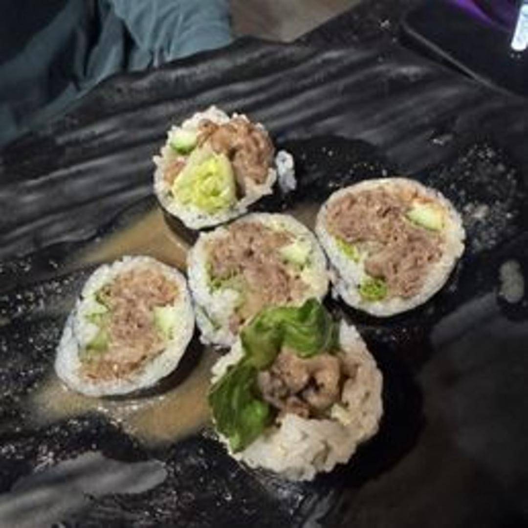 A luxurious roll featuring thinly sliced Kobe beef, combined with complementary ingredients like avocado and cucumber.