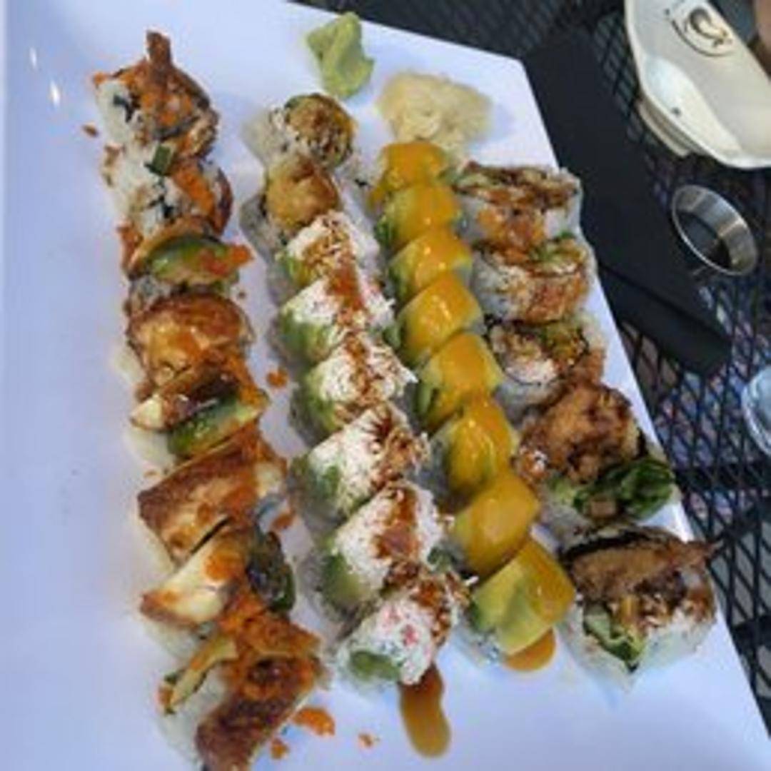 Salmon, tuna, yellowtail, avocado, and cucumber rolled in rice and nori seaweed.