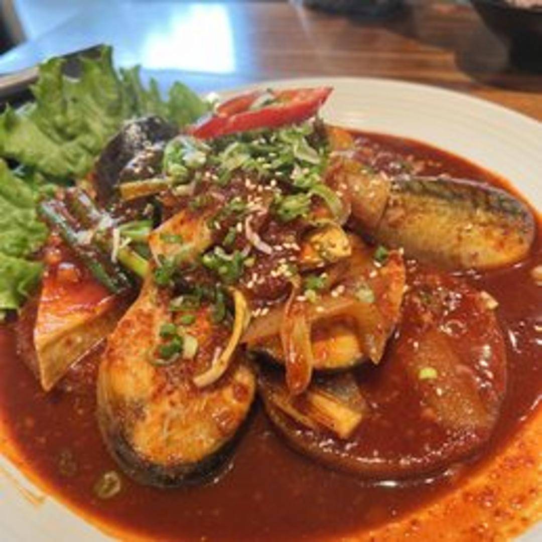 A robust and spicy Korean stew featuring mackerel simmered with daikon radish in a fiery broth. The radish provides a subtle sweetness that balances the spice, creating a flavorful and comforting dish.