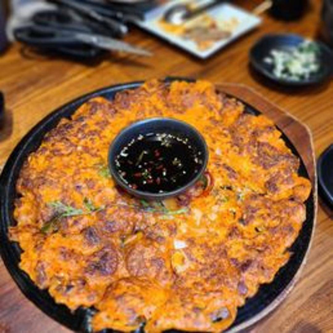 A savory pancake featuring crispy pork belly and tangy kimchi. Pan-fried to golden perfection, this pancake offers a delightful combination of textures and flavors.