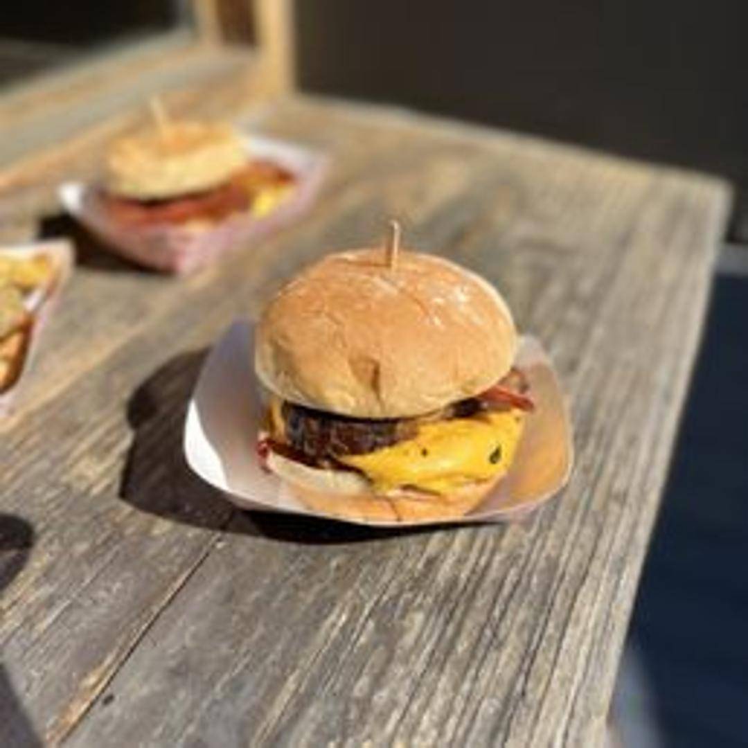 For the serious meat lover! This towering burger boasts a double beef patty, crispy bacon, juicy pulled pork, melted cheddar cheese, and a smoky BBQ sauce, all piled high on a toasted bun. Prepare to get messy!