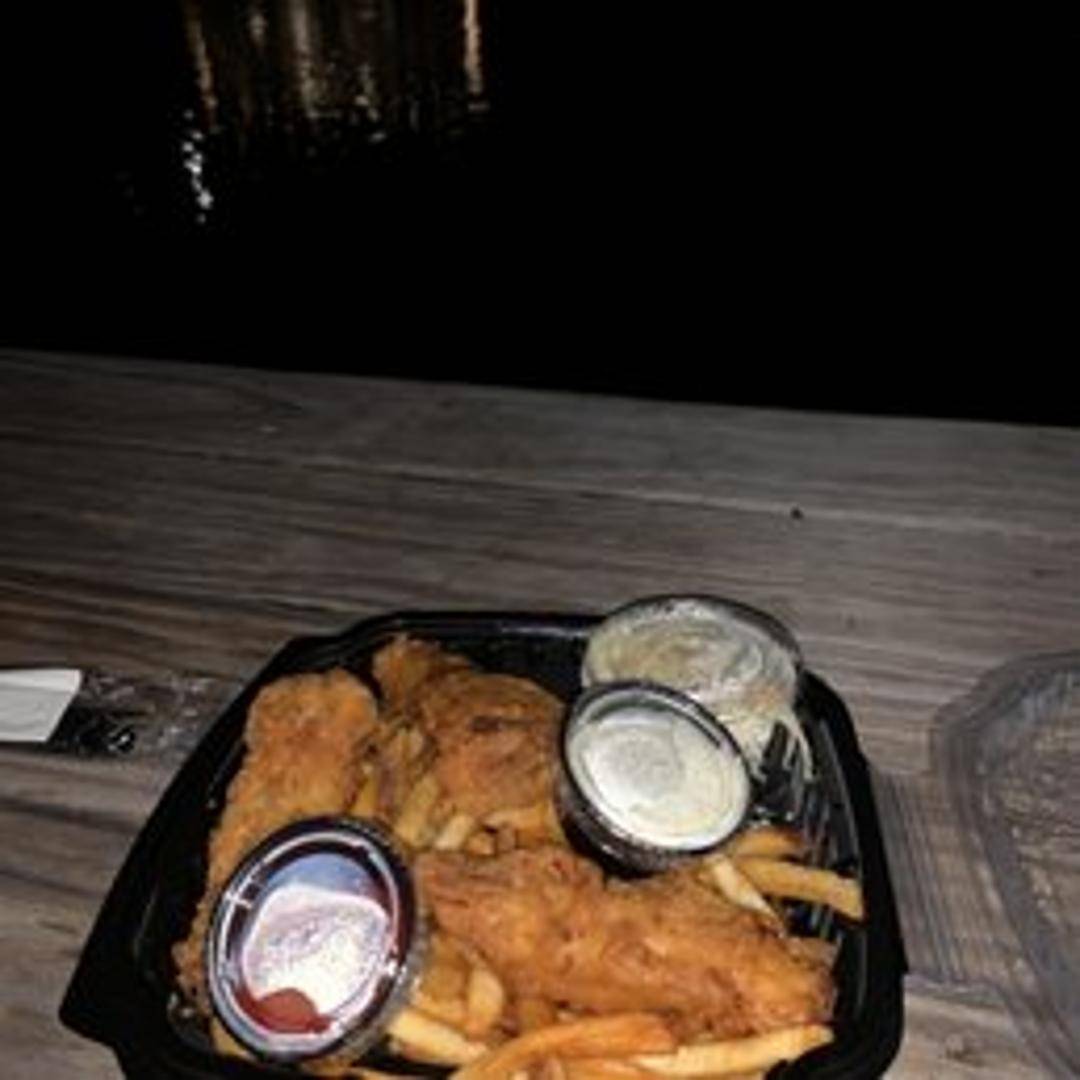A beloved pub staple featuring flaky white fish, often cod or haddock, encased in a crispy, golden beer batter and served alongside a generous portion of hot, thick-cut fries (chips). Usually accompanied by a tangy tartar sauce and a fresh lemon wedge.