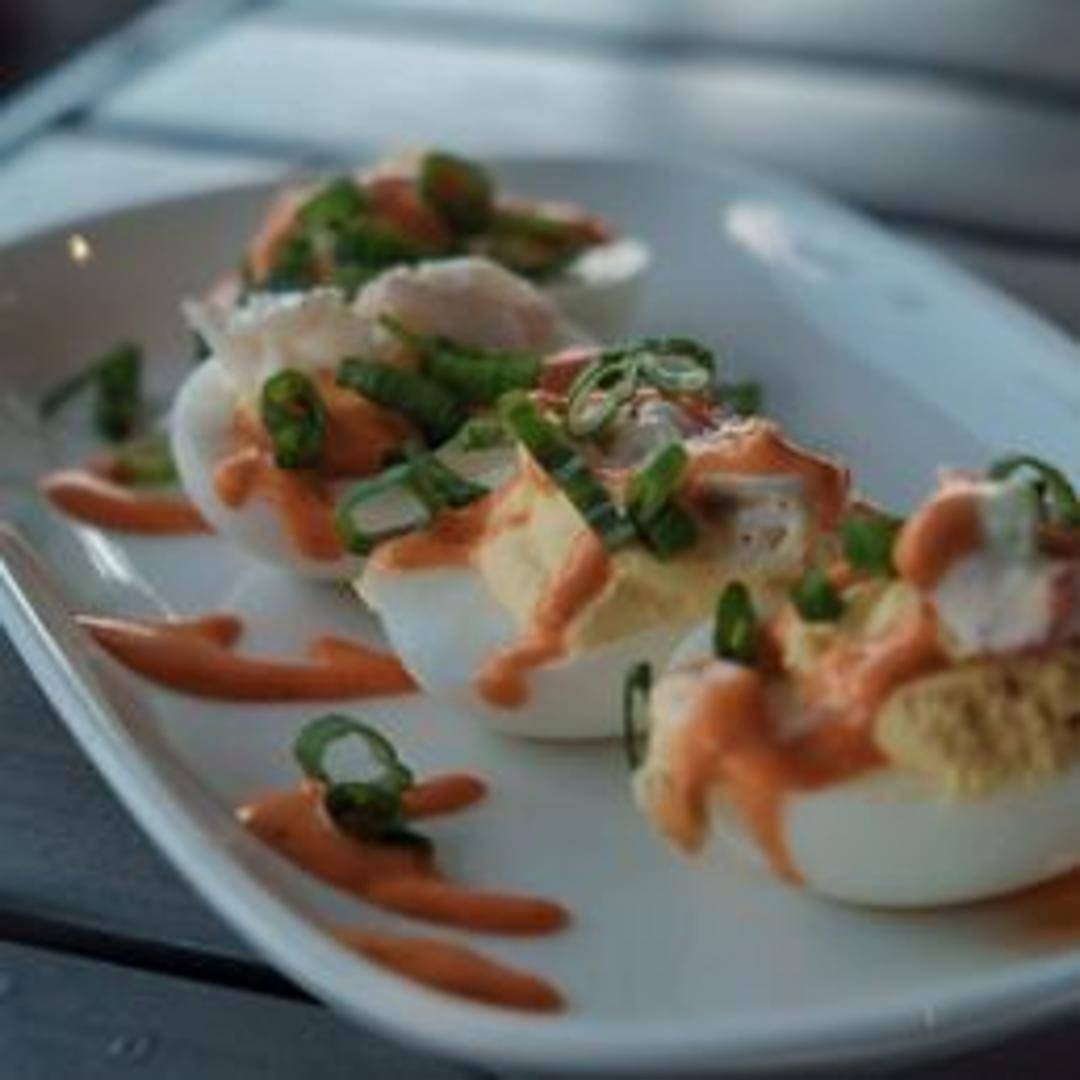 A gourmet twist on a classic appetizer, these deviled eggs feature creamy, rich yolks blended with delicate pieces of succulent lobster meat. Garnished for an elegant presentation, they offer a sophisticated and flavorful bite.