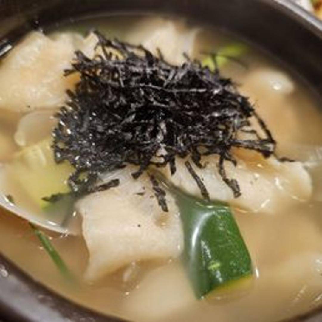 A traditional Korean soup featuring hand-torn noodles in a flavorful broth. Usually includes vegetables, potatoes, and sometimes seafood or meat. Known for its chewy noodles and comforting warmth.