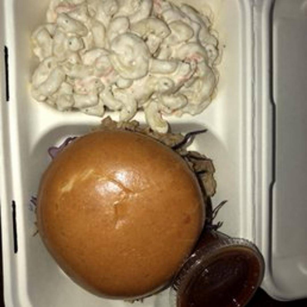 Slow-cooked, tender pulled pork smothered in a tangy and sweet BBQ sauce, piled high on a toasted bun. Served with your choice of side.