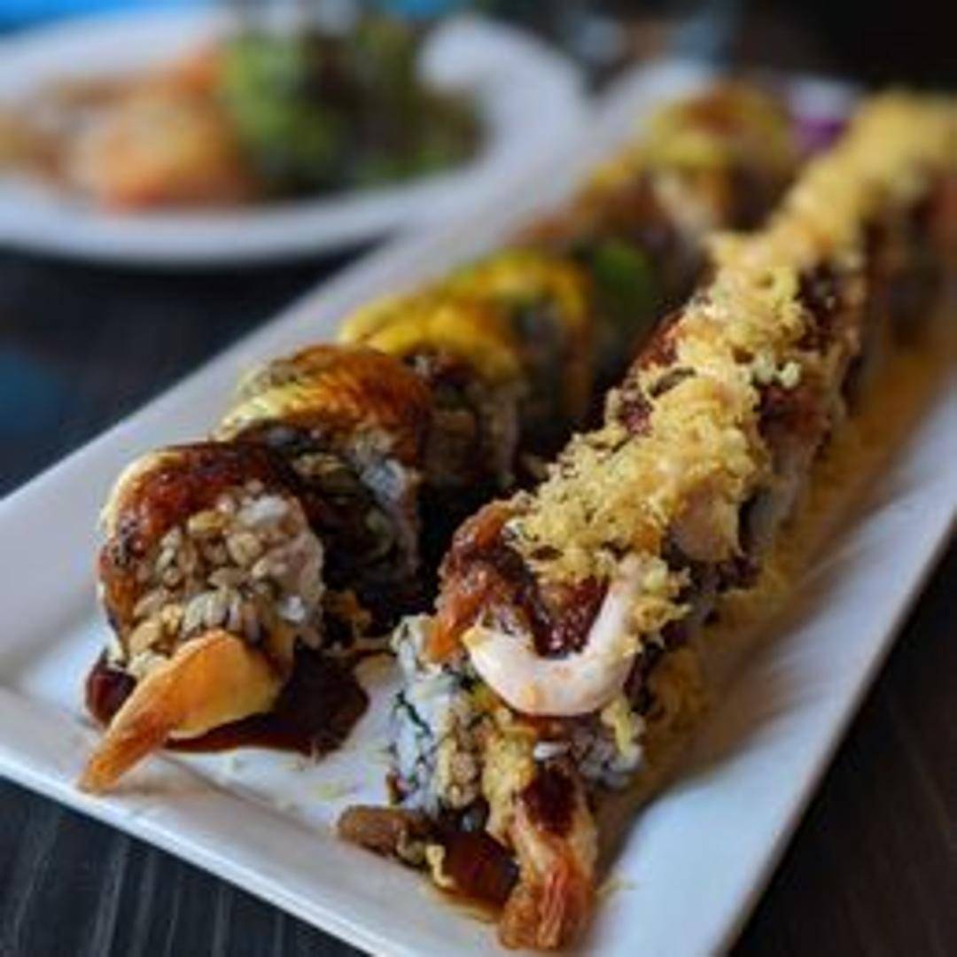 This roll packs a spicy punch! It typically features a combination of spicy tuna and cucumber inside, often topped with a spicy mayo or sriracha drizzle. It offers a fiery kick balanced by the cool cucumber and creamy texture of the spicy tuna mixture. May contain tempura flakes for added crunch.