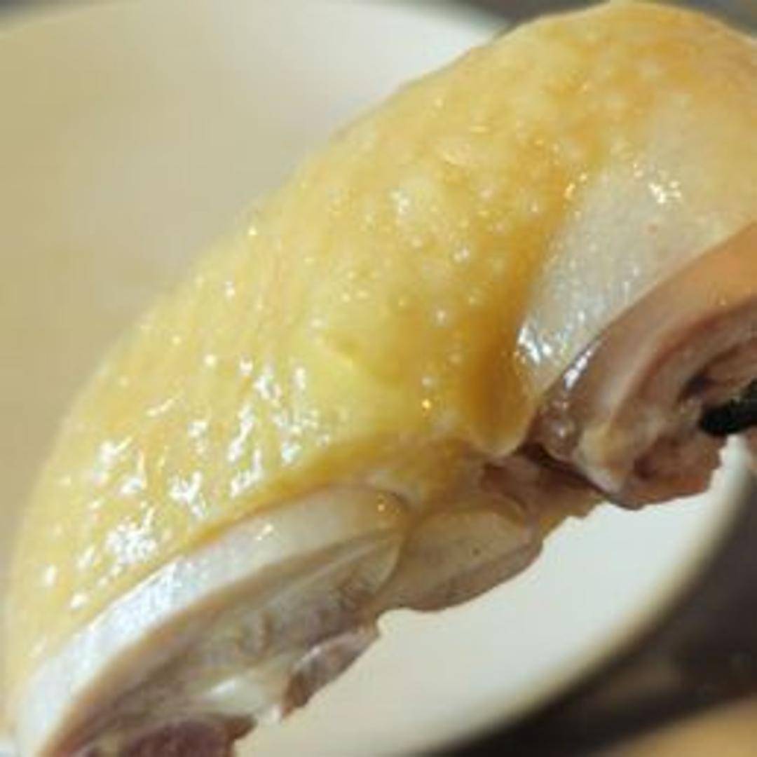 Poached chicken served with fragrant rice cooked in chicken broth and a dipping sauce of ginger and scallions.