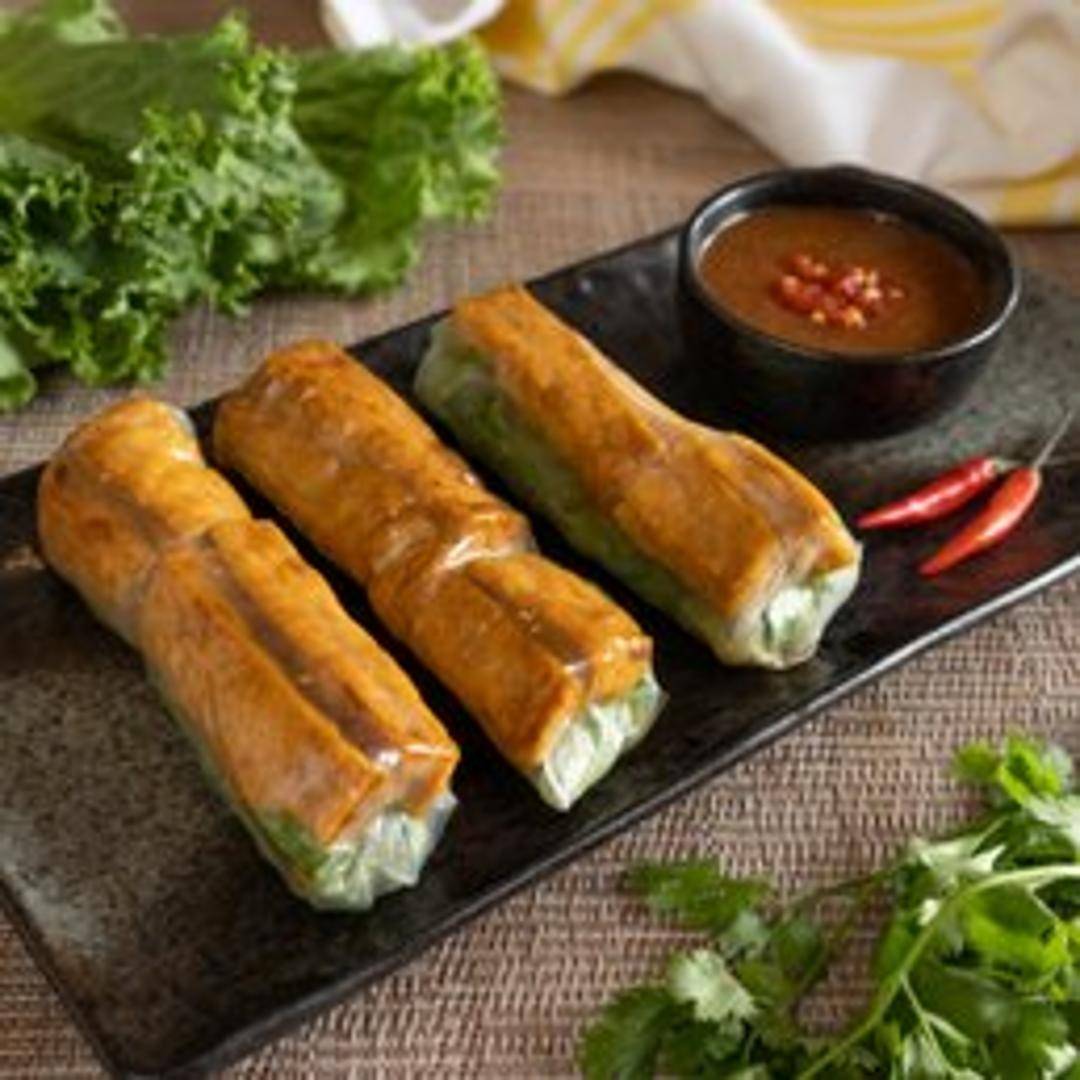 Fresh rice paper rolls filled with tofu, vermicelli noodles, lettuce, mint, and other fresh herbs. Served with peanut sauce.