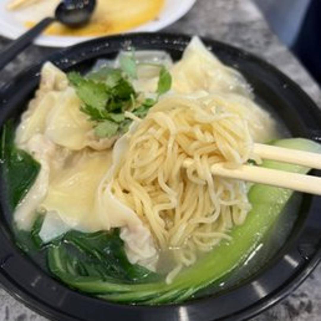 Delicate wontons filled with a savory pork and shrimp mixture, served in a flavorful broth with noodles and garnished with fresh vegetables.