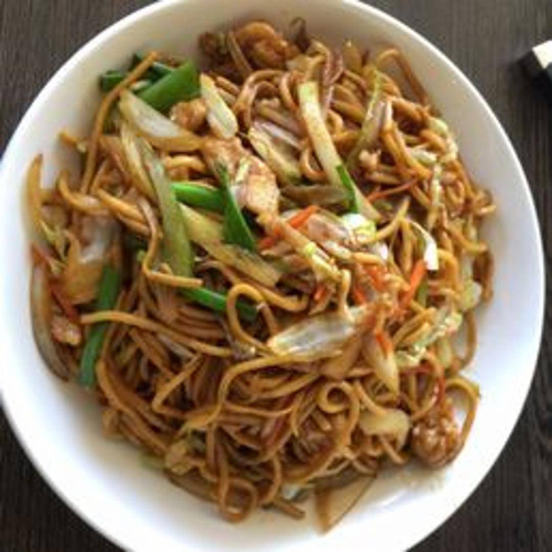 Stir-fried egg noodles tossed with tender pieces of chicken, crisp vegetables such as celery, cabbage, onions, and carrots, all coated in a savory soy-based sauce. A classic Chinese-American comfort dish.