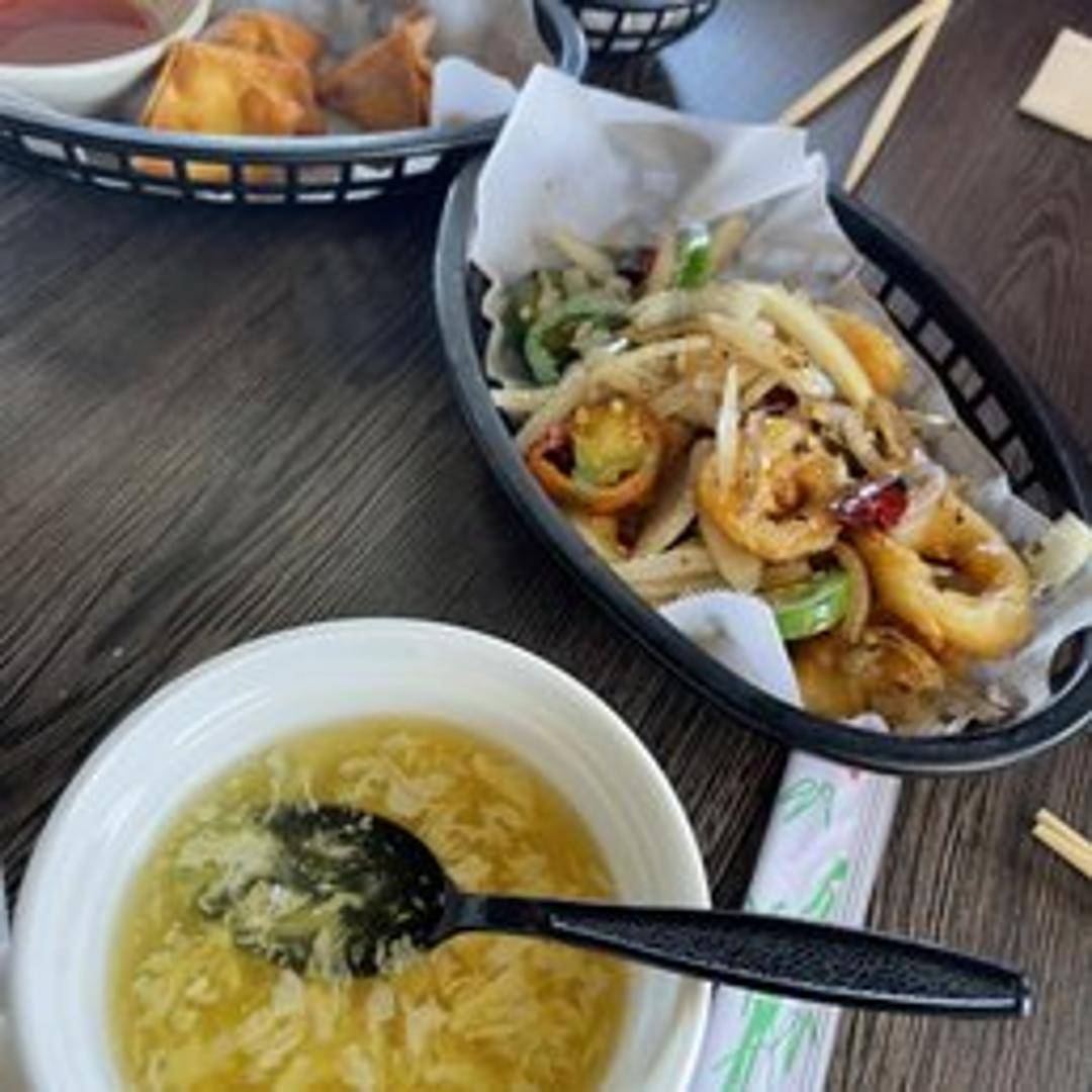 Lightly battered and fried squid seasoned with a blend of salt, pepper, and other aromatic spices. Crispy on the outside and tender on the inside. Served with a dipping sauce.