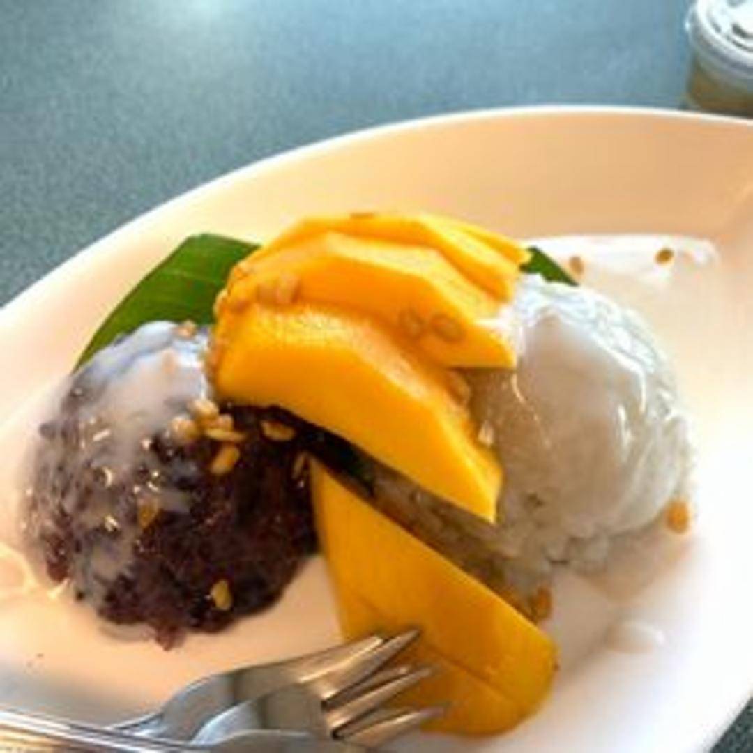 A beloved classic Thai dessert featuring sweet, ripe mango slices served alongside warm, tender glutinous sticky rice. This delightful treat is traditionally drizzled with a rich, slightly salted coconut milk sauce and often garnished with toasted sesame seeds or crispy mung beans, offering a perfect balance of sweet, creamy, and subtly savory flavors.