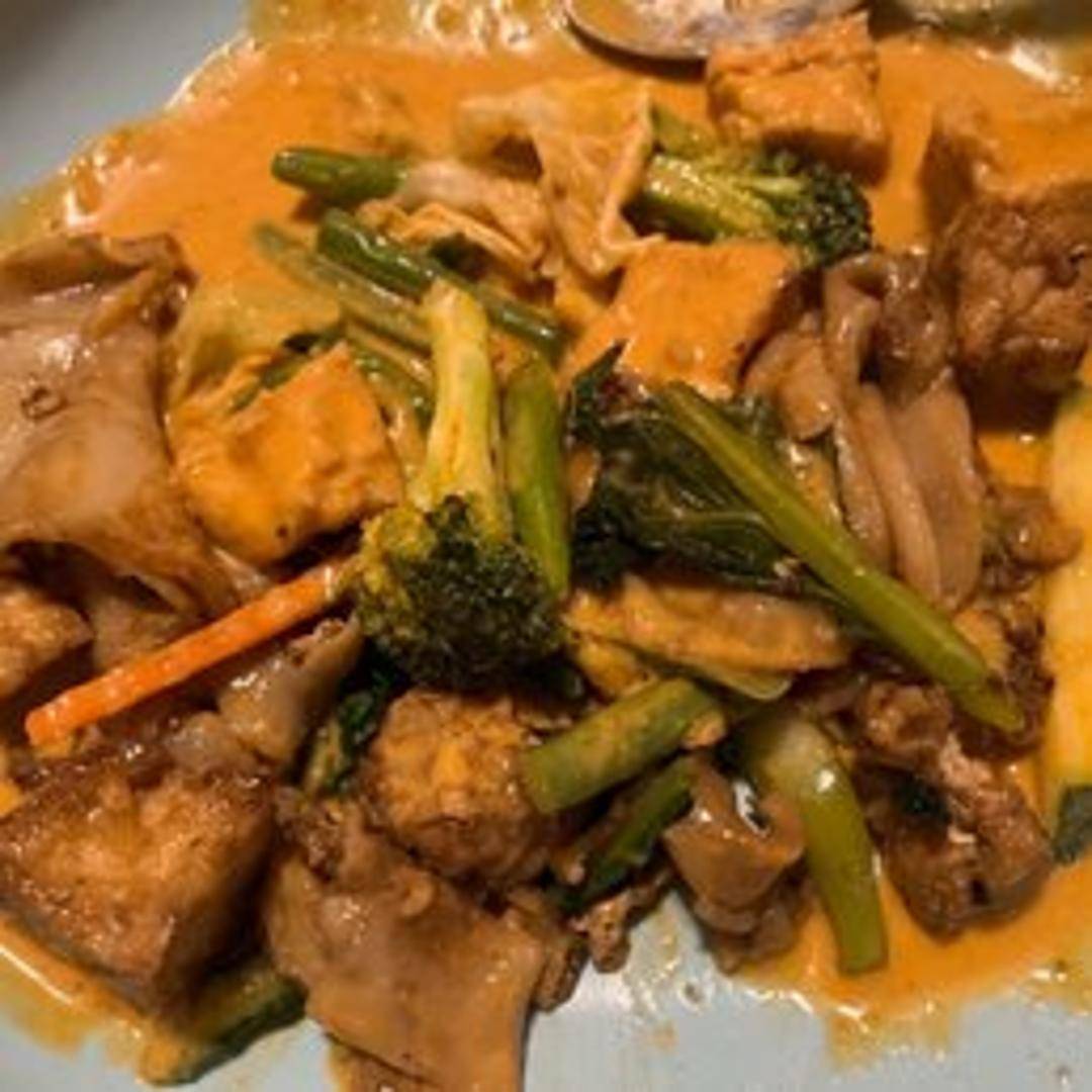 A rich and aromatic Thai curry known for its thick, creamy texture and balanced flavors. Made with red curry paste, coconut milk, kaffir lime leaves, and a hint of sweetness, often served with bamboo shoots, bell peppers, and your choice of protein. A milder, sweeter curry that offers a delightful warmth.