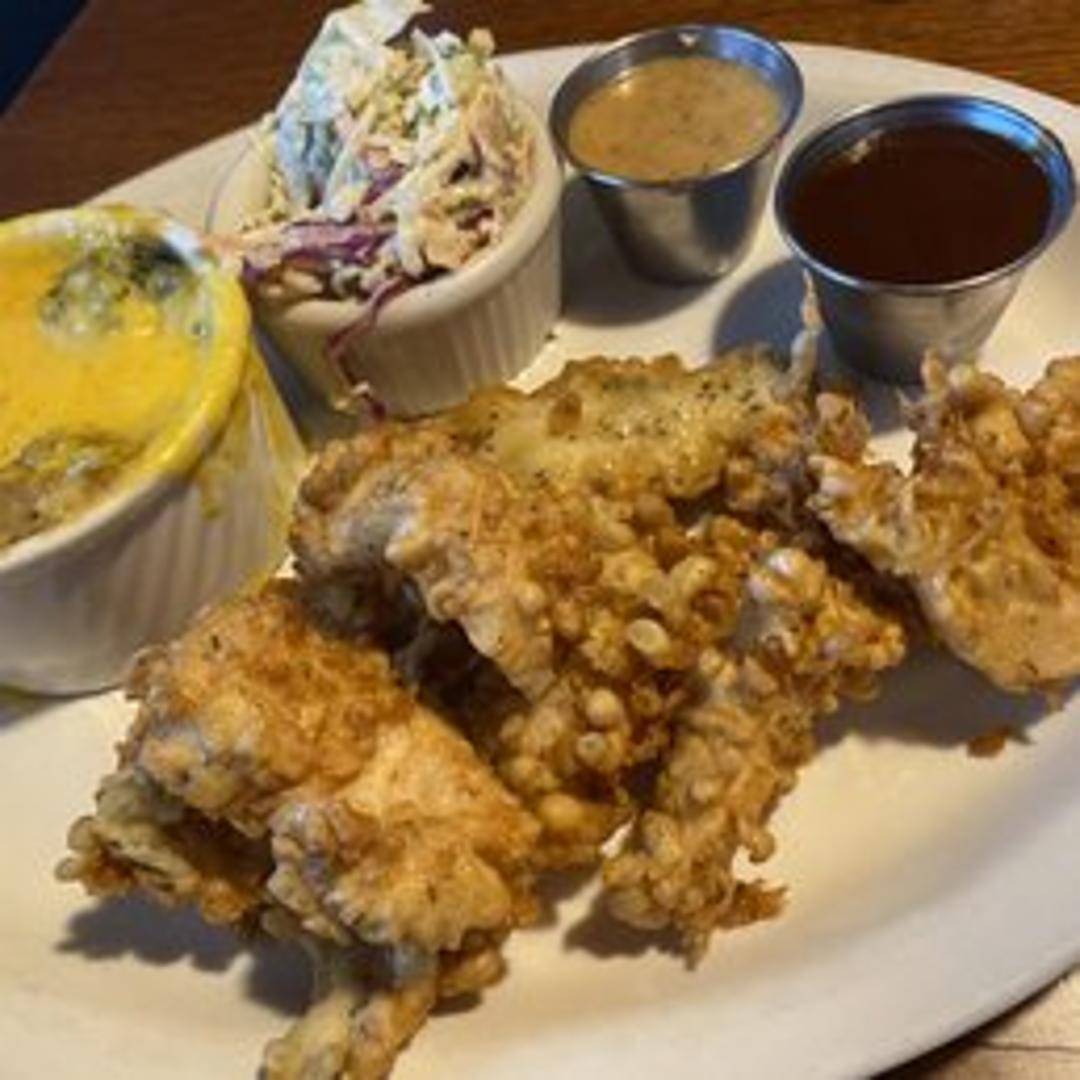 Crispy, golden-fried chicken tenders made from tender, all-white meat, served with your choice of dipping sauce and a side of crispy seasoned fries.