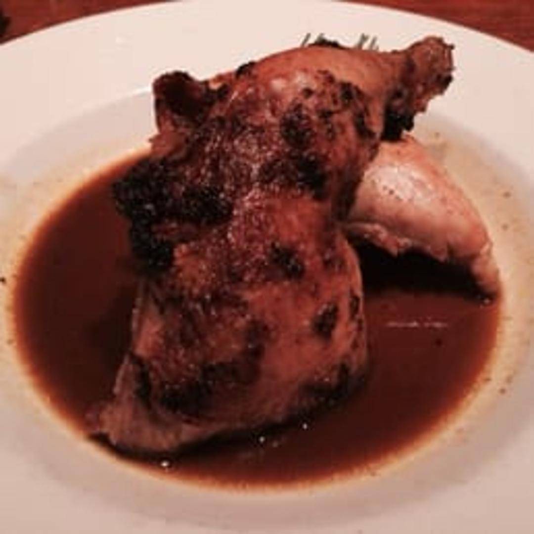 Half roasted chicken, seasoned with herbs and spices. Served with choice of side.