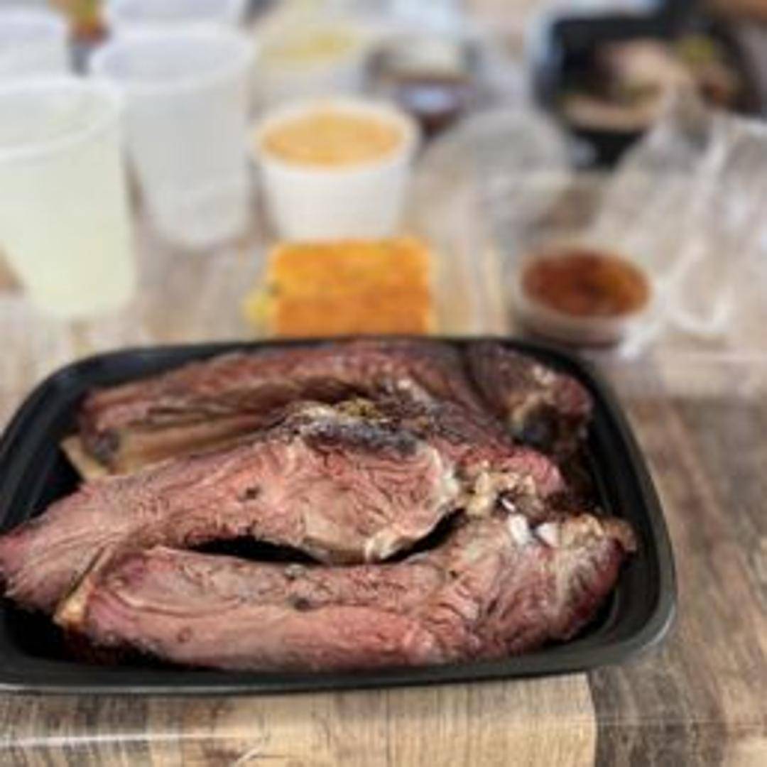 Smoked beef ribs seasoned with a savory blend of spices. Prepared with a rich, beefy flavor and tender texture.