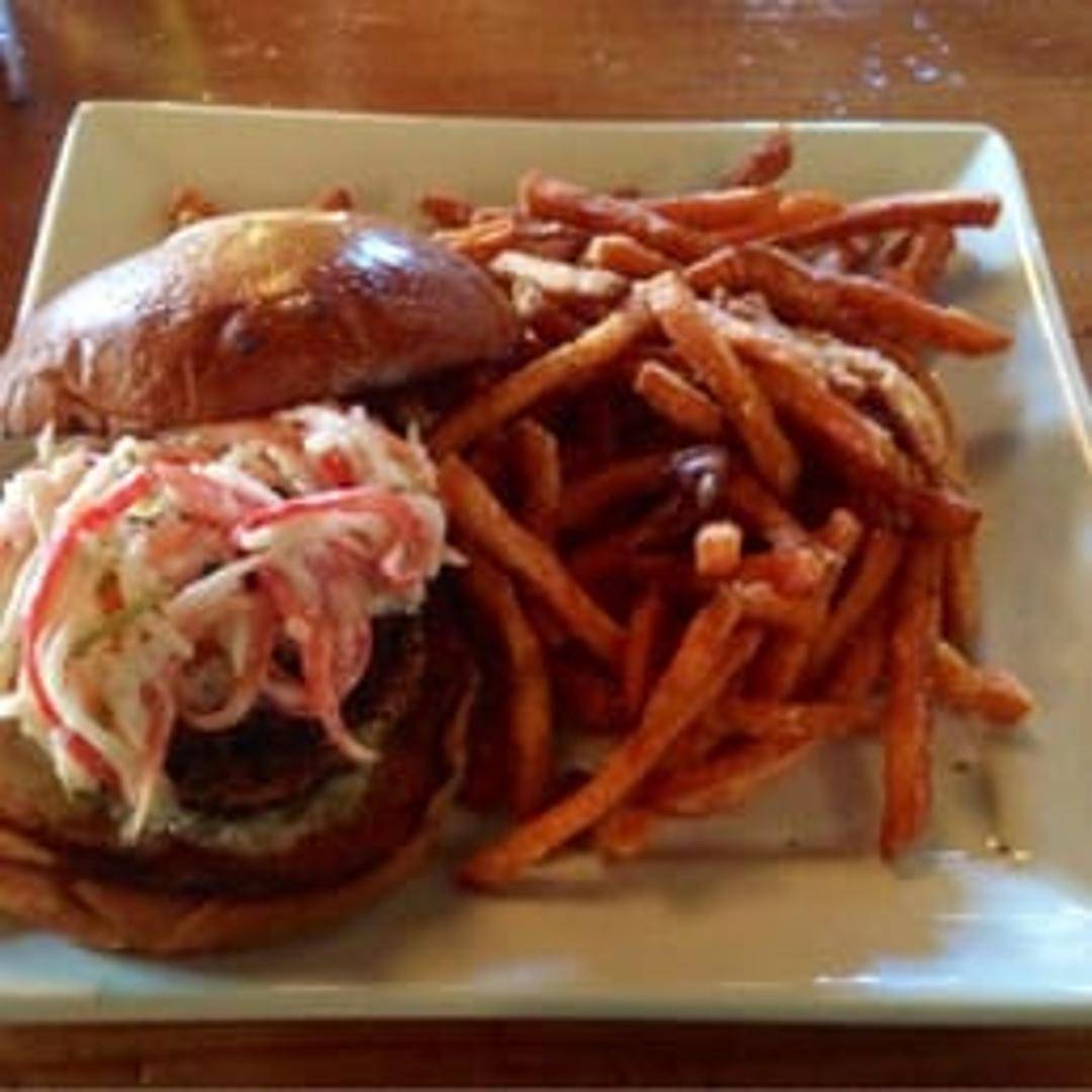Indulge in our exquisite Crab Cake Sandwich, showcasing a generously portioned, pan-seared crab cake made with succulent lump crab meat and minimal filler, allowing the natural sweetness of the crab to shine. Served on a toasted artisan bun, it's typically dressed with crisp lettuce, ripe tomato, and a zesty remoulade or tartar sauce.