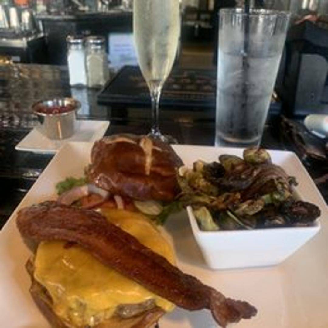 The Blue Labeled Burger is a signature creation, featuring a perfectly cooked, juicy premium beef patty. This distinctively named burger is often adorned with a unique combination of toppings, which may include tangy blue cheese, crisp fresh vegetables, and a signature sauce, all nestled within a toasted artisan bun for a truly memorable experience.