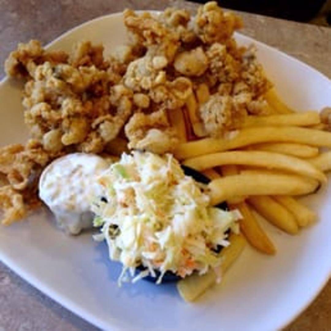 A heaping plate of succulent fried clams, crispy and golden brown. Served with tartar sauce, lemon wedges, and your choice of two sides, such as coleslaw, french fries, onion rings, or steamed vegetables.