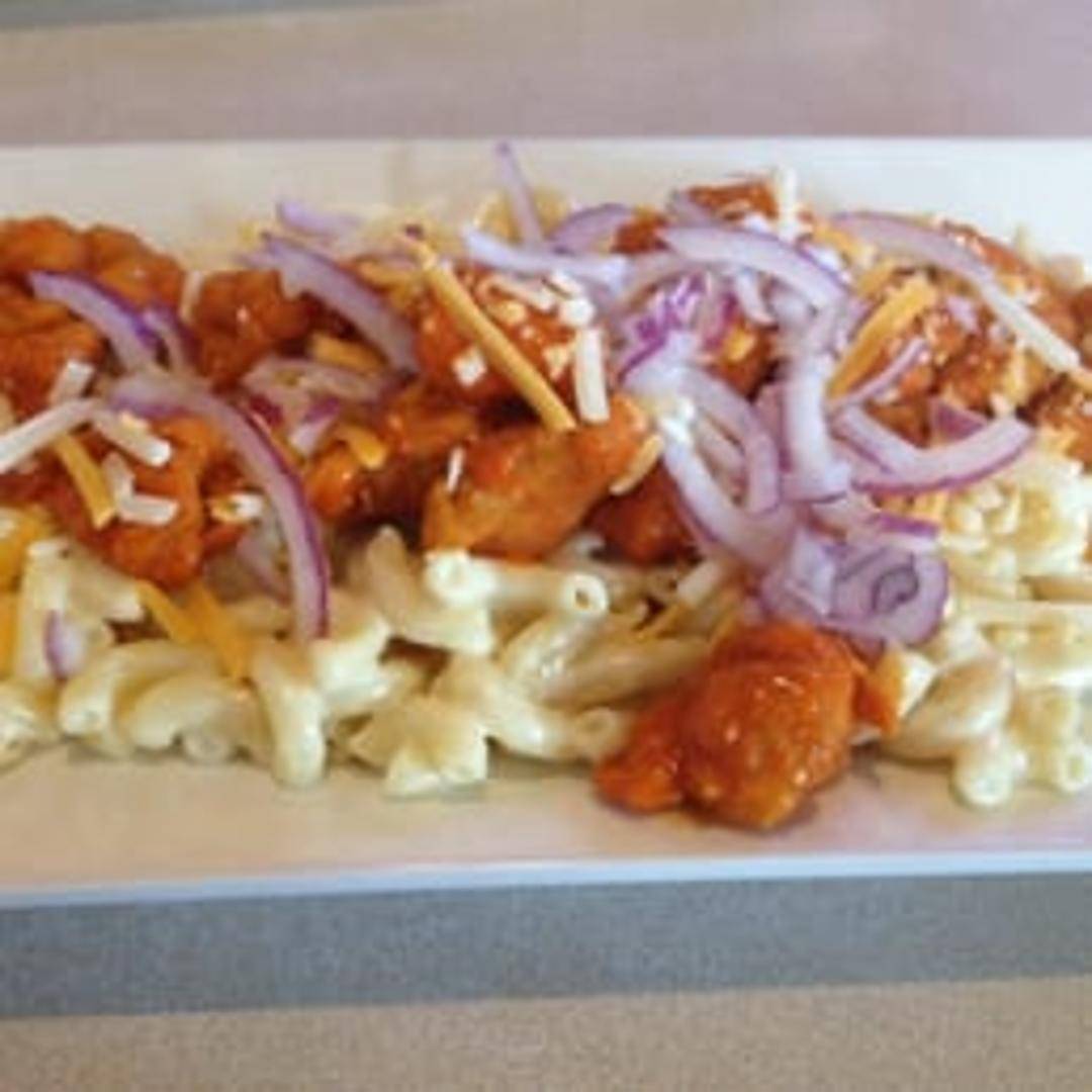 A zesty and satisfying wrap filled with crispy or grilled chicken tossed in spicy buffalo sauce, crisp romaine lettuce, creamy Caesar dressing, and Parmesan cheese, all wrapped in a soft tortilla.