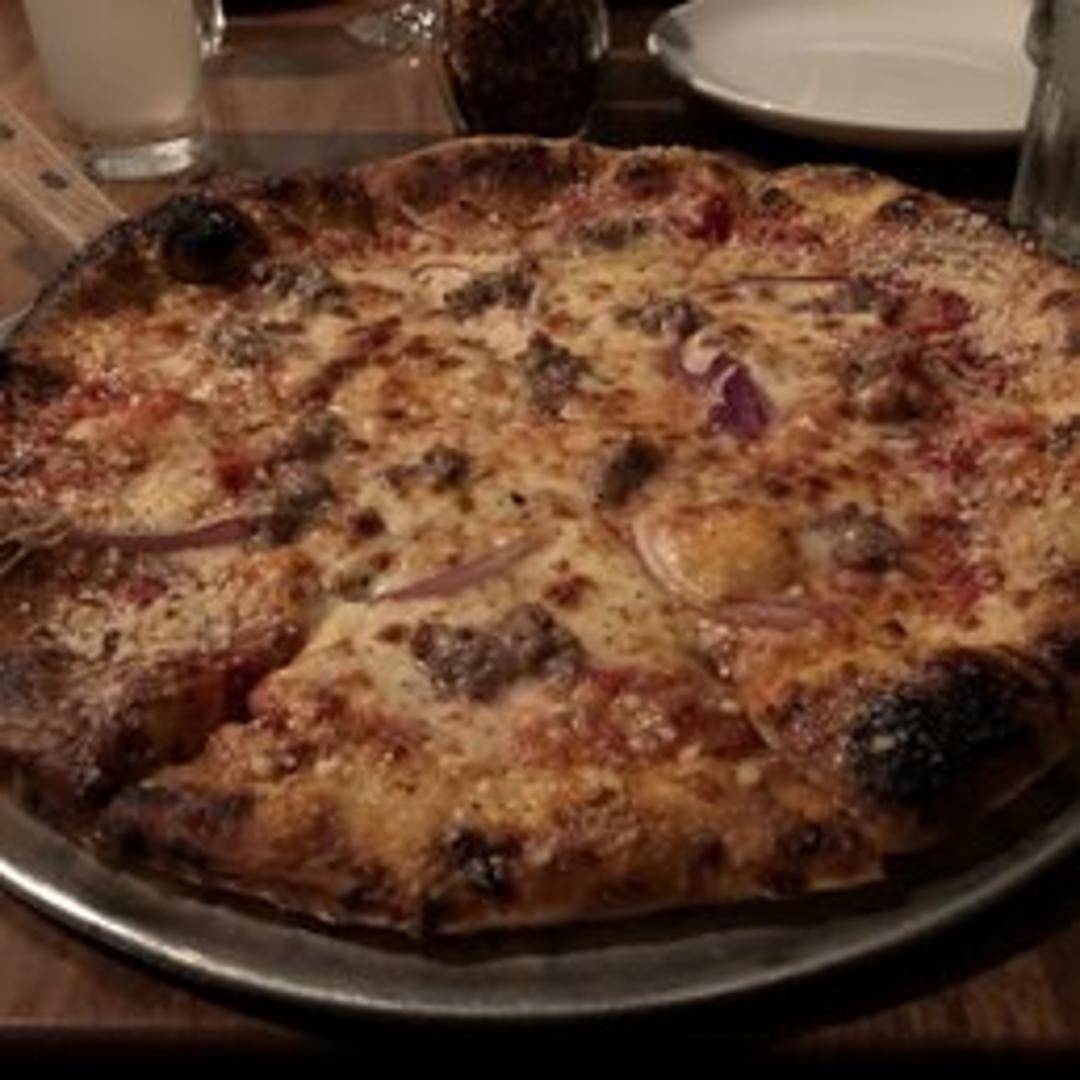 A savory and aromatic pizza featuring crumbled, perfectly seasoned fennel sausage layered over our classic tomato sauce and melted mozzarella cheese. Finished with a touch of roasted red onions and fresh fennel fronds, offering a delightful blend of sweet and savory notes on a perfectly baked crust.