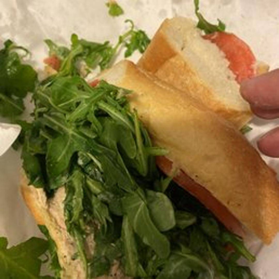 A vibrant sandwich featuring high-quality tuna, blended with a tangy and refreshing Spritz-inspired dressing. Served on artisan bread with complementary greens and vegetables.